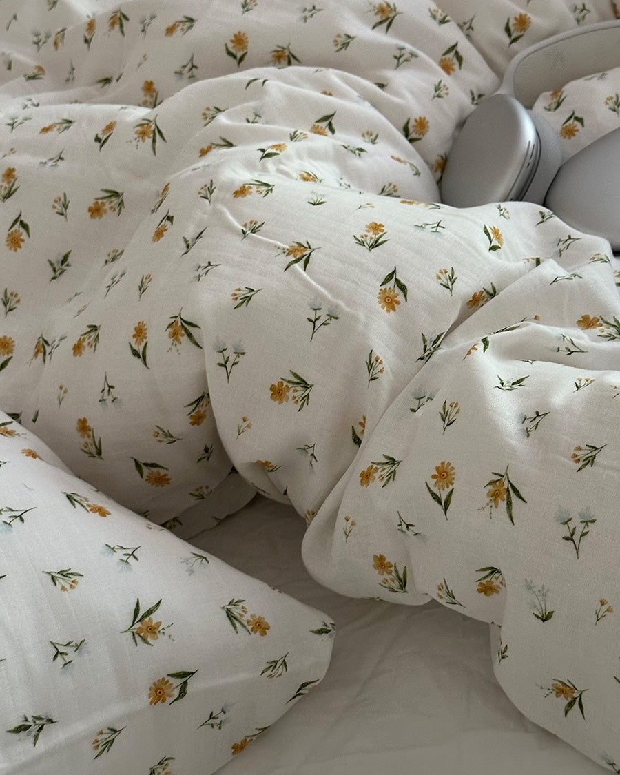 The Riyad duvet cover set is made of cotton muslin, a lightweight and breathable fabric that is perfect for keeping you cool and comfortable while you sleep. The set includes a duvet cover and two pillowcases. Single sets only come with one pillowcase.