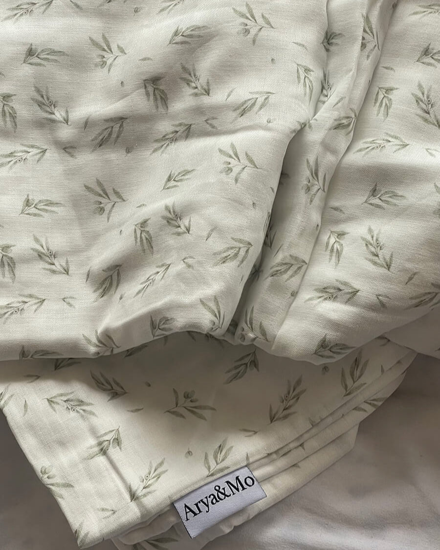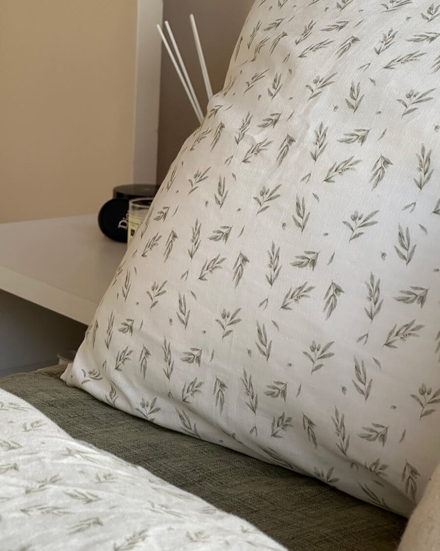 The Olive duvet set is made of cotton muslin, a lightweight and breathable fabric that is perfect for keeping you cool and comfortable while you sleep. The set includes a duvet cover and two pillowcases with our olive tree floral print. Single sets only come with one pillowcase.